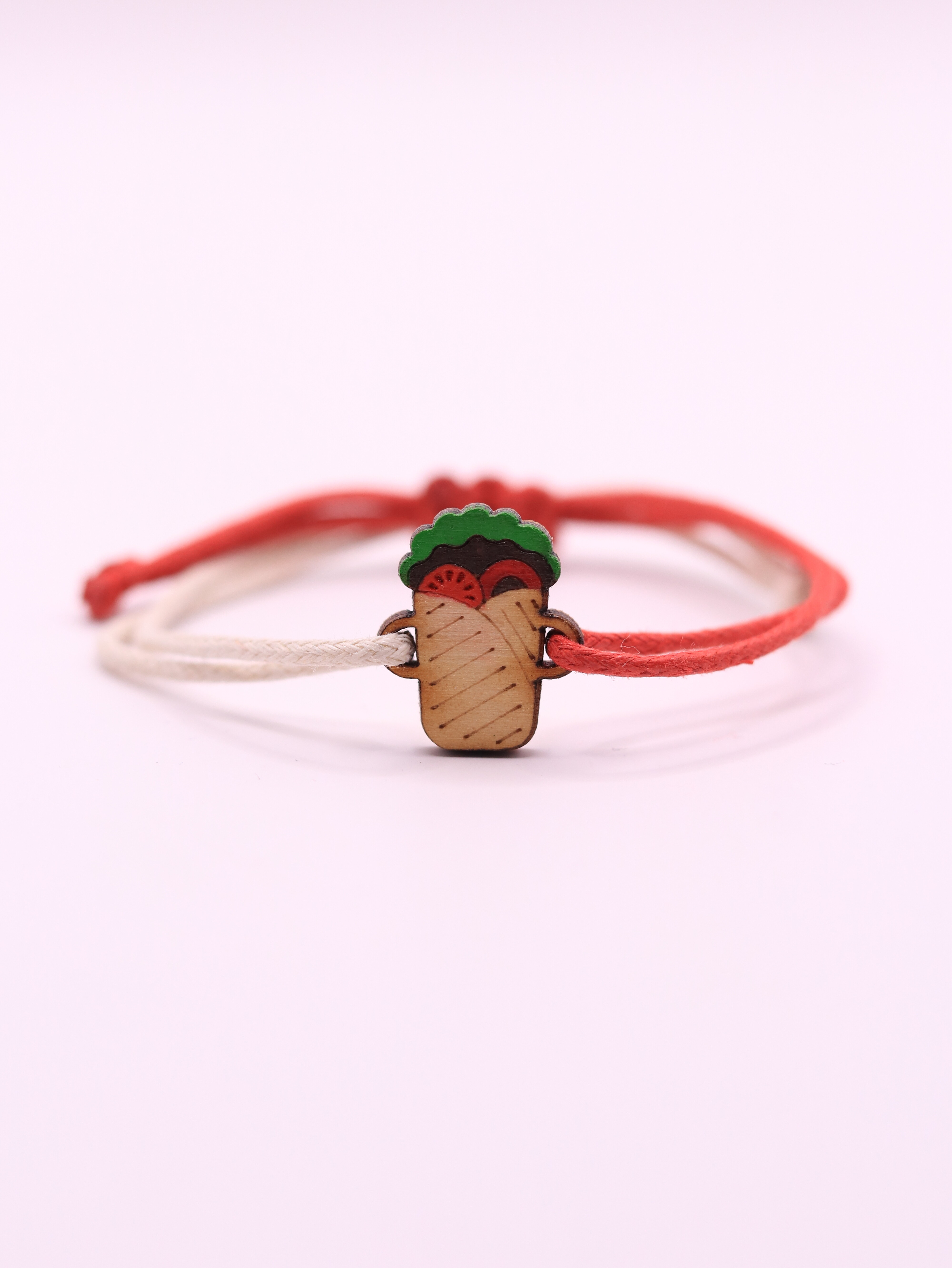 Prezentowana bransoletka stanowi nie lada rarytas wśród tego typu produktów, ze względu na nieszablonowy charakter. Ta ręcznie wykonana, wyjątkowa ozdoba wyróżni Cię w tłumie. Została zaprojektowana i zrealizowana z dbałością o każdy detal. Posiada rzemieślniczy wymiar i kraftową stylistykę. Podczas wdrażania projektu połączyliśmy dwie nasze największe miłości, czyli drewnianą biżuterię i pyszne jedzenie! Idealny dodatek dla fanów jednej z najpopularniejszych przekąsek, jaką jest kebab!
